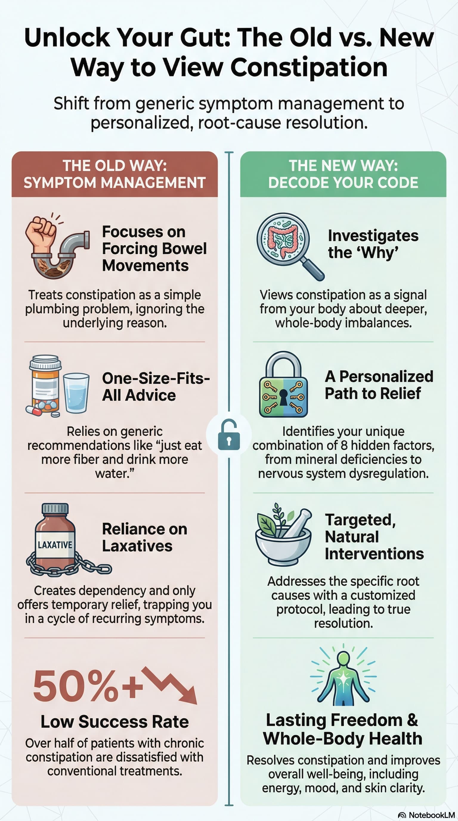 But here's what changed everything: I developed a framework for identifying each person's unique constipation code—and it worked.
